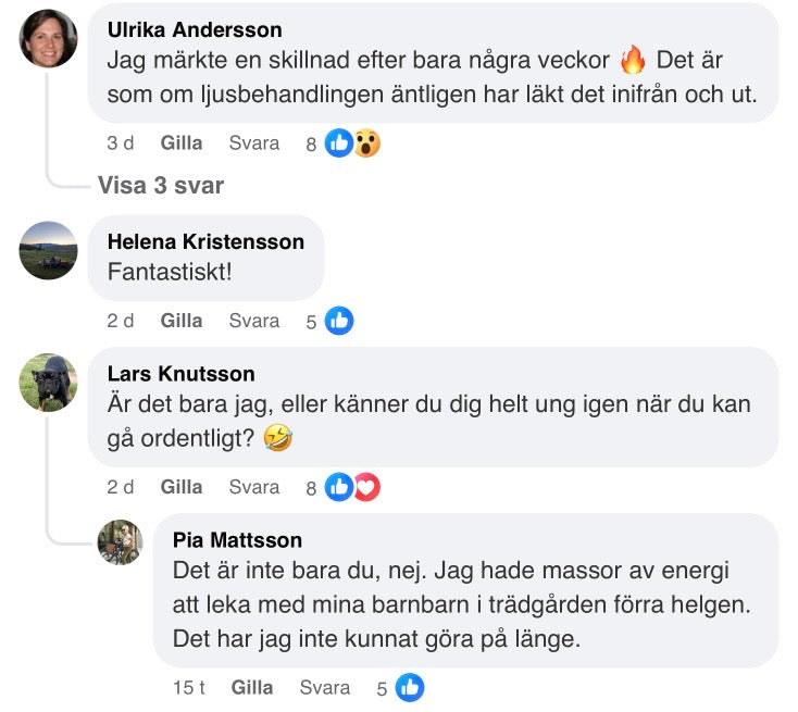 Här på Luneroa vill vi att våra kunder ska älska sin produkt, annars återbetalar vi 100 % av beloppet. Vi är så säkra på att vår rödljusterapi hjälper dig, att vi tar hela risken.